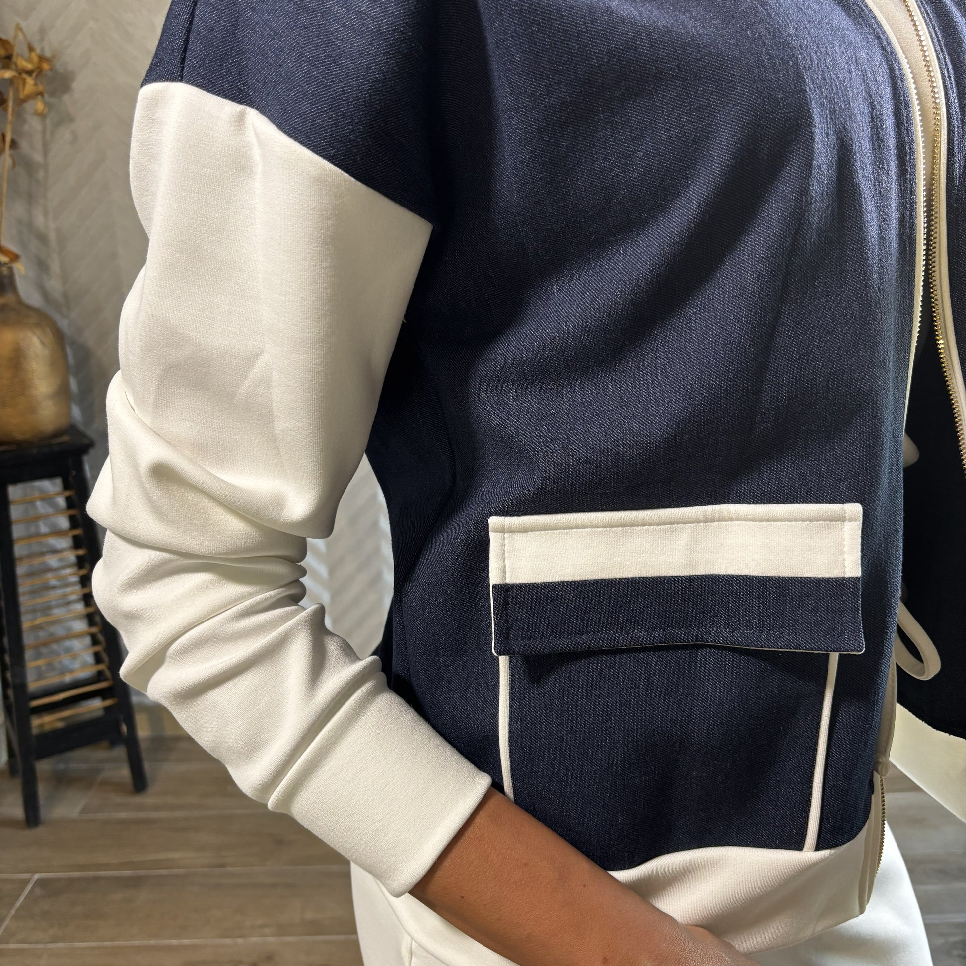 Effortless style meets everyday comfort with the Lyrane jogging set. Featuring a white and navy blue bomber jacket paired with matching white pants, this coordinated ensemble brings sporty sophistication to casual dressing. Crafted from premium soft fabrics, each piece offers a relaxed fit with thoughtful detailing for maximum comfort and contemporary appeal. Perfect for weekends, travel, or stylish streetwear, Lyrane makes lounging look effortlessly polished.