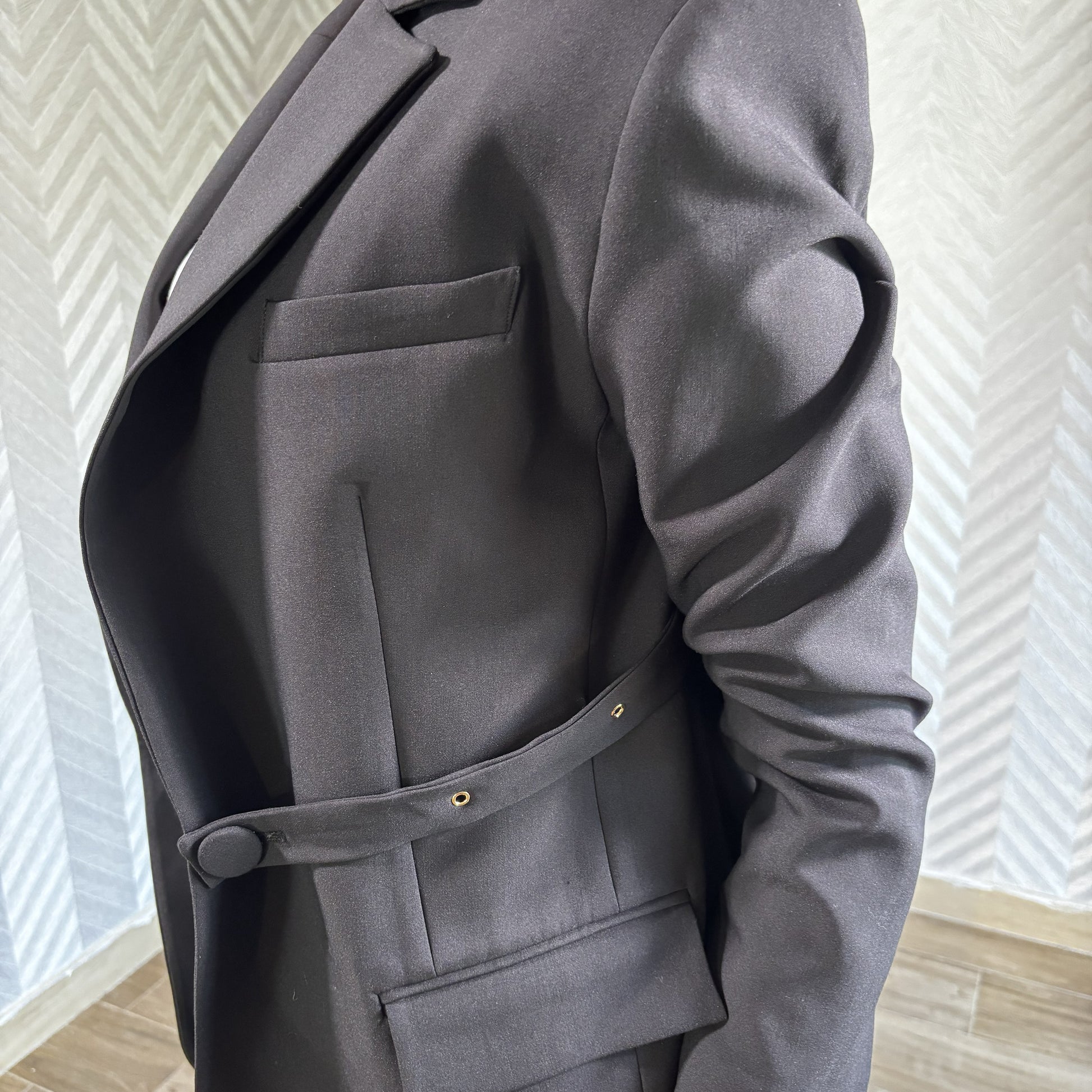Noirane | Black Blazer with Front-Wrapping Detachable Belt