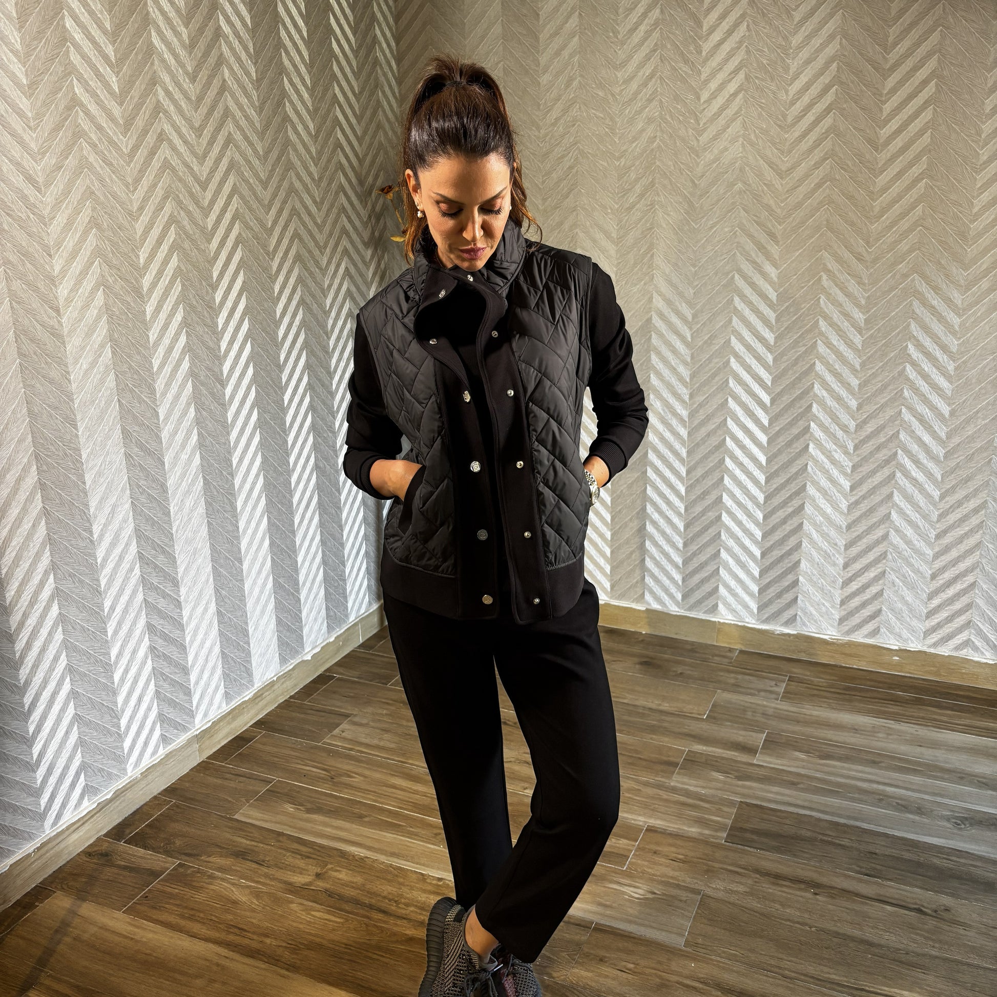 Relaxed sophistication meets modern versatility with the Tavine set. This three-piece cotton ensemble includes comfortable jogger-style pants, a soft sweater, and a matching gilet, creating the perfect blend of coziness and contemporary style. Crafted from premium cotton, each piece is designed for comfort, layering, and effortless coordination. Whether for travel, casual outings, or stylish weekends, Tavine embodies laid-back luxury with a refined edge.